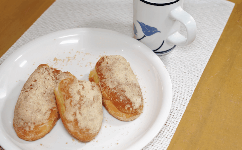 時間短縮にと買ったきな粉揚げパンに、口の中の水分を持って行かれてしまいちょっと危険な状態になりました。